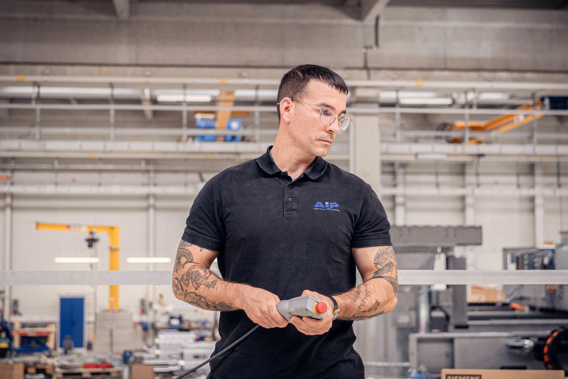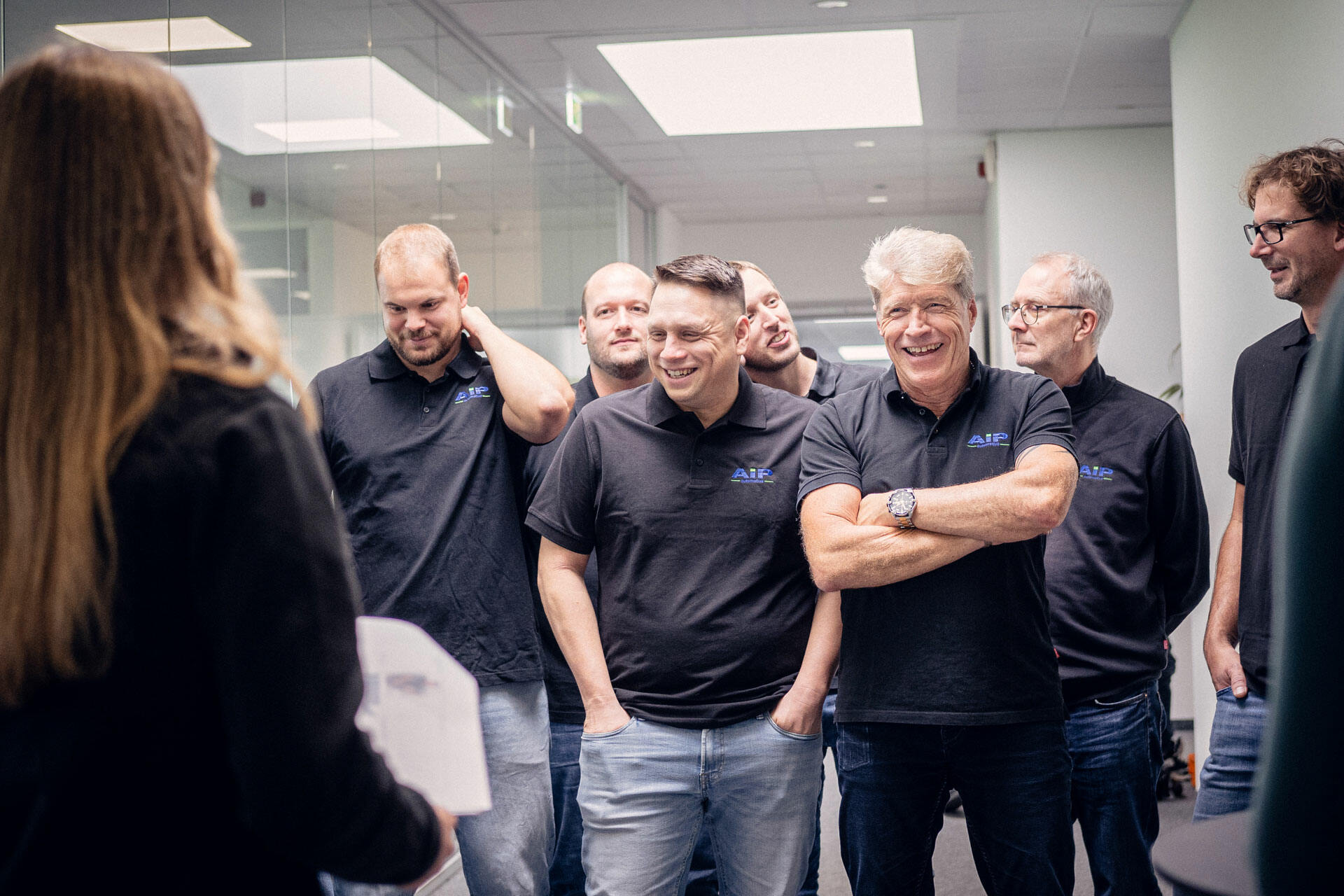 Damit der Herobereich direkt einen Adrenalinschub liefert, haben wir den Schriftzug „AIP" kurzerhand zur Bildmaske umfunktioniert: Dahinter laufen Drohnenflüge übers Werk, Hallenaufnahmen und Prüfstand-Action im Loop. Kein zugekauftes Template, kein Effekt von der Stange – sondern genau die Sorte Detailverliebtheit, die AIP selbst auszeichnet.